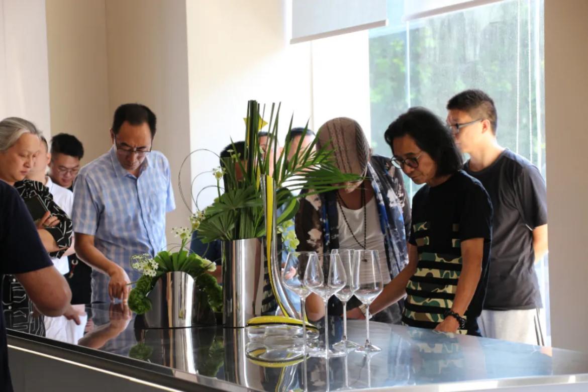 在游學活動交流中,設計師們共同品鑒紅酒,暢聊設計;現場還有專業咖啡培訓師,為大家細致教學手磨咖啡的沖制流程。