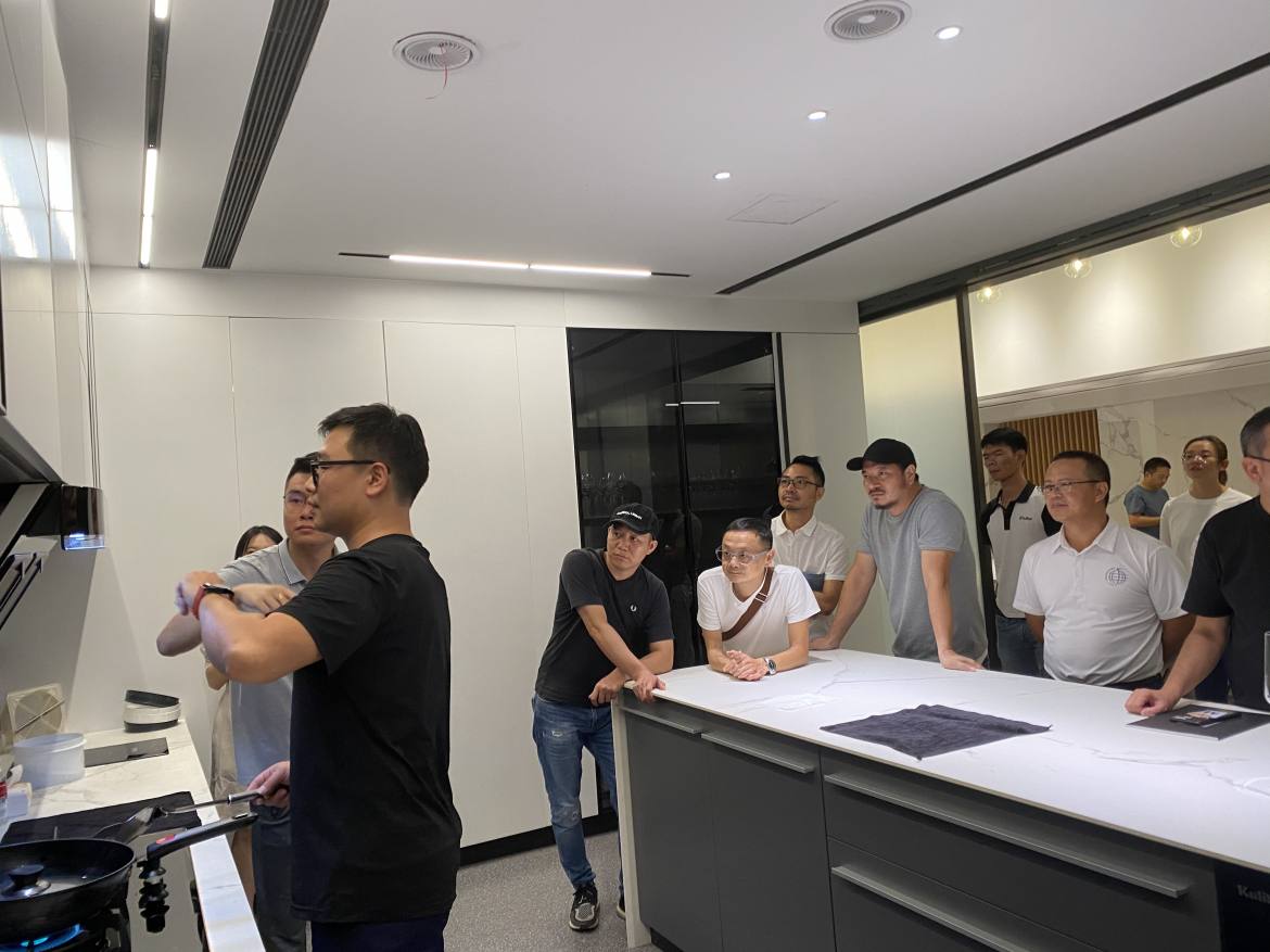 一說到開放式廚房,大家都非常向往。一方面想嘗試打通餐廚空間之后的廣闊世界,另一方面又擔心油煙問題。此次活動現(xiàn)場,庫靈圖家裝事業(yè)部總監(jiān)為大家在開放式廚房做了爆炒辣椒的演示體驗,庫靈圖前置油煙分離油煙機和廚房新風系統(tǒng),展現(xiàn)出了高效的油煙吸凈效果,這為解決開放式廚房的油煙問題提供了有效方案,令大家贊嘆不已。